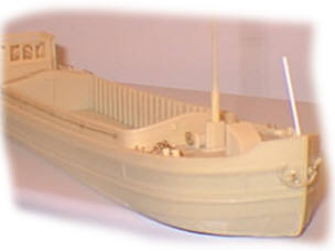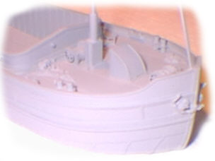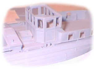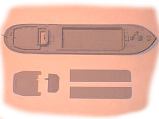 Na eerst wat huizen van Artitec gebouwd te hebben, en daarmee ervaring opgedaan, besloot ik om met een schip te beginnen. De foto's bekijkend op de Artitec website beloofden veel keus in modellen, en rijk aan details. De keuze werd uiteindelijk het model van een 120 ton binnenvaart schip. Een typisch Nederlands model wat men in elk kanaal en rivier, in Nederland en daar buiten, tegen komt. Veel giet hars onderdelen zijn er niet aanwezig, het schip is bijna uit een stuk gegoten. Het stuurhuis, de daken van het woon gedeelte, stuurhuis en laadruimte, alsmede de masten zijn los bijgevoegd en worden gereed gemaakt zoals eerder is omschreven bij het werken met de huizen. Wel heeft dit model, en andere schepen, veel messing onderdelen. Dit was voor mij een nieuwigheid, een messing / wit metaal bouwpakket van een trein, de wad loper, buiten beschouwing gelaten. Dit was tenslotte al weer 15 jaar geleden. |