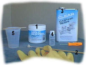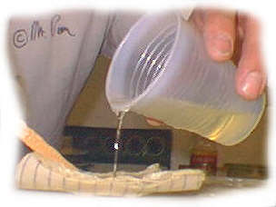 Het gieten met het giet hars / katalysator mengsel. Dit moet nauwkeurig gemengd worden volgens de handleiding van de toegepaste materialen, welke per fabrikant verschillen. Meestal slechts een paar druppeltjes katalysator. |