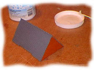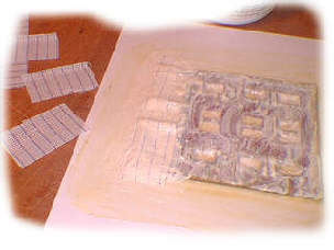 echter niet van de onderkant. Het maken van een tweedelig mal is niet mogelijk. Het gebruikte latex neemt alle detail, zoals bijvoorbeeld bakstenen, heel goed over. Voordat er een mal gemaakt kan worden moet het voorbeeld afgewerkt zijn en op een ondergrond gelijmd worden. Het latex loopt overal heen tijdens het aanbrengen, en daarom moet er een gesloten verbinding zijn met de ondergrond en bijvoorbeeld raam lijsten en muur randen. Eventueel is er met een schaar wat overtollig latex, na