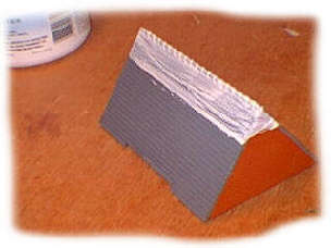 Hier maak ik een mal voor de nokpannen en kroon lijsten, onderdelen welke ik hier in Amerika niet kan krijgen in de winkels. |