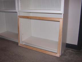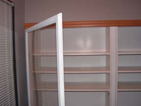 moeten halen en dan alle boekenkasten weer los gaan schroefen. De latten tussen de boekenkasten zijn haast niet zichtbaar als de ramen en klepdeurtjes zijn gemonteerd. Op naar de volgende klus.