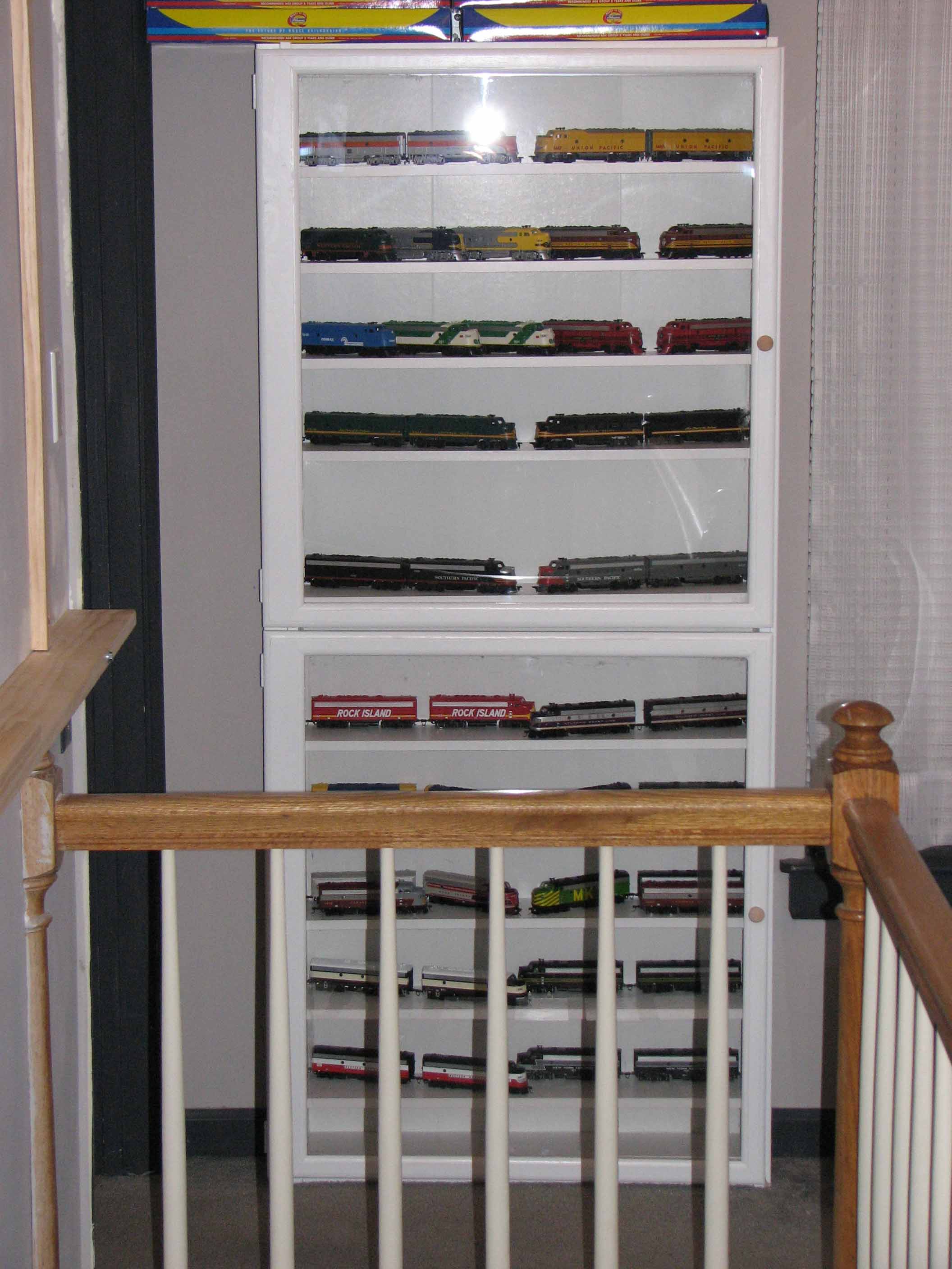 van mijn Amerikaanse trein verzameling. Aangezien ik een Nederlandse modelbaan hebt, gaan dus de Amerikaanse modellen de vitrine in. Dit was vroeger omgedraaid, tot dat ik er voor koos om dus de Nederlandse treinen te laten rijden in plaats van uit te stallen. |